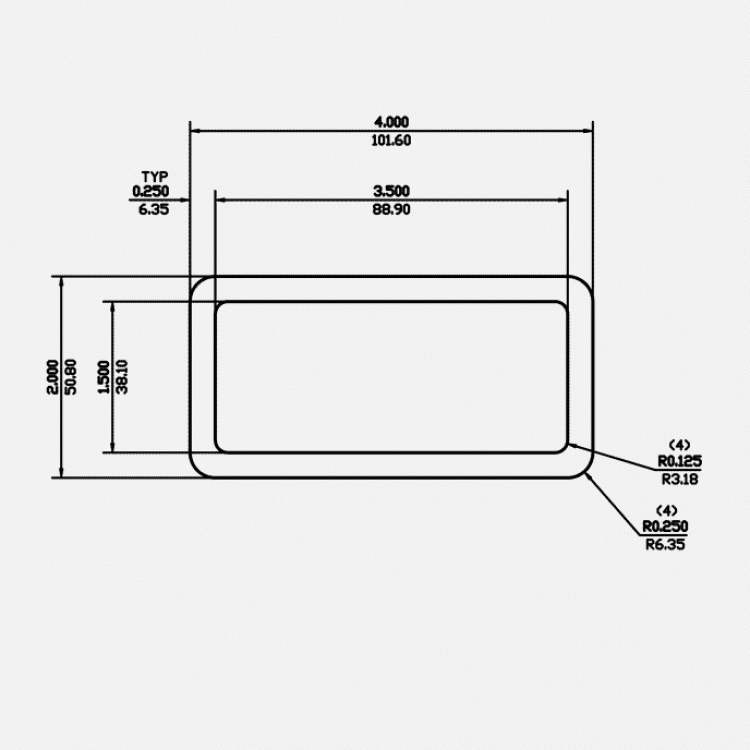 Square or Round corner is OK - Example: If this section has square corners and in case we don't have it in stock we will substitute the same size with round corners.