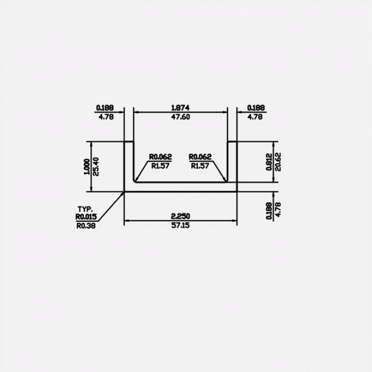 Channel RF 2.25 X 1 X 0.188 X 0.188 X 0.062 6061-T6 Mill Finish 20ft