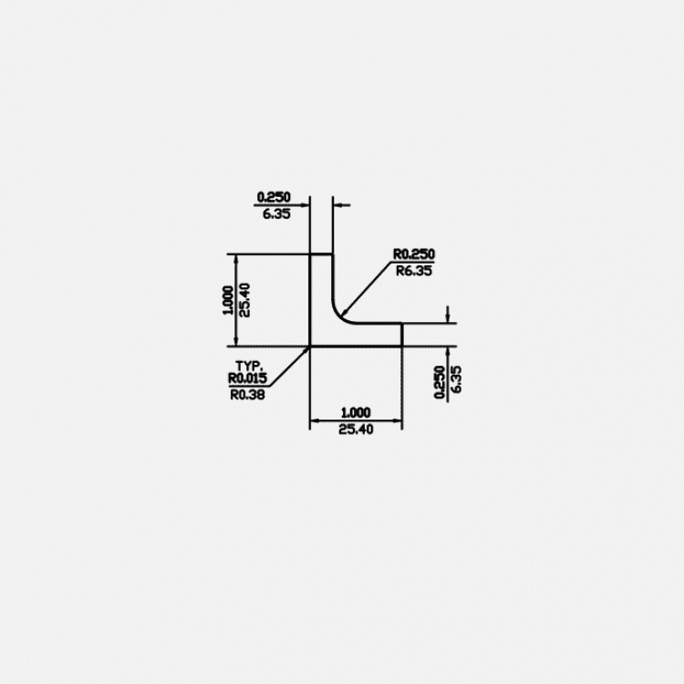 Angle RF 1 X 1 X 0.25 X 0.25 X 0.25 6061-T6 Mill Finish 20ft